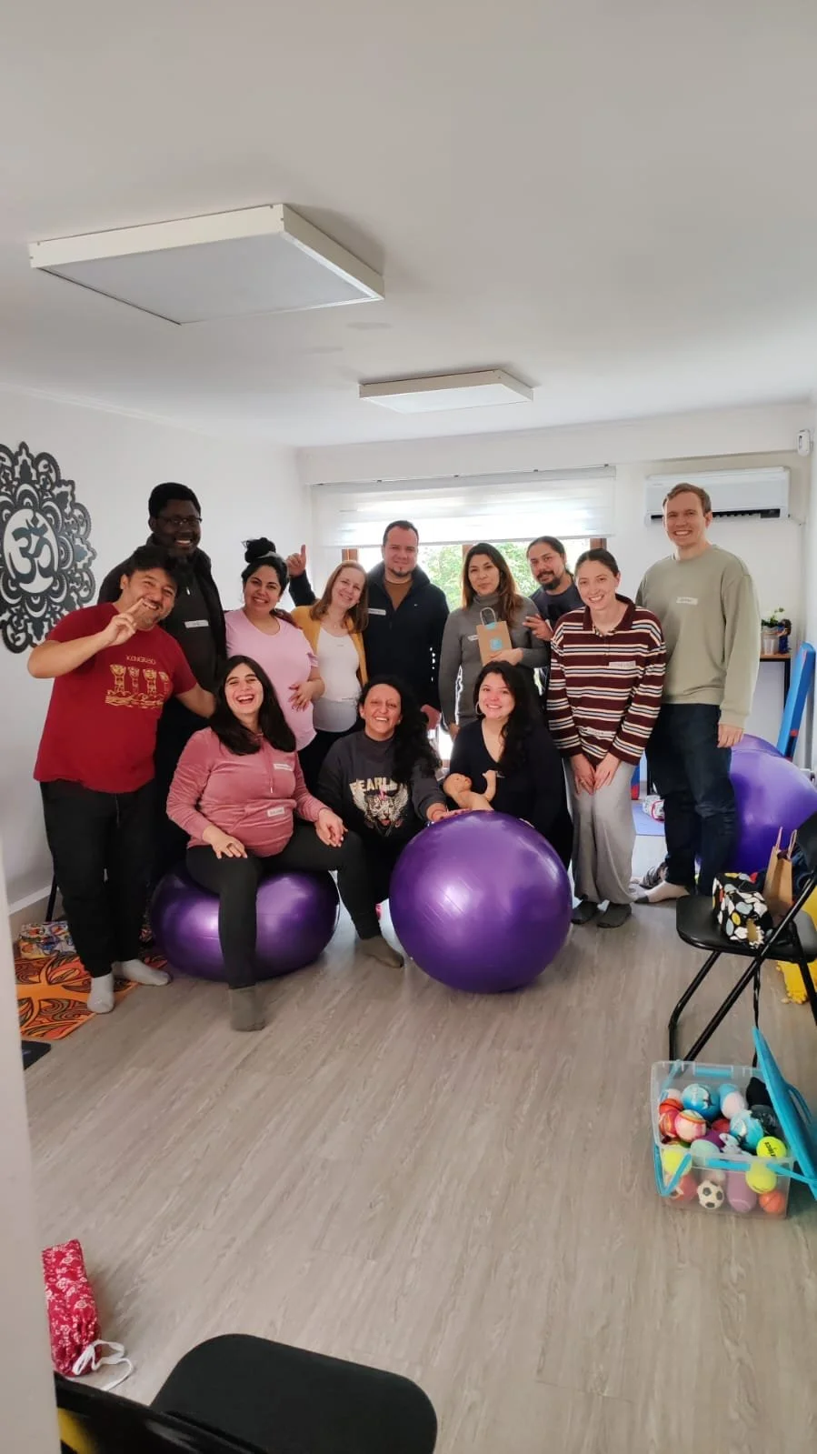 Práctica de conciencia corporal en base a Método Parto y Movimiento®, pelvis libre y posiciones para el parto.